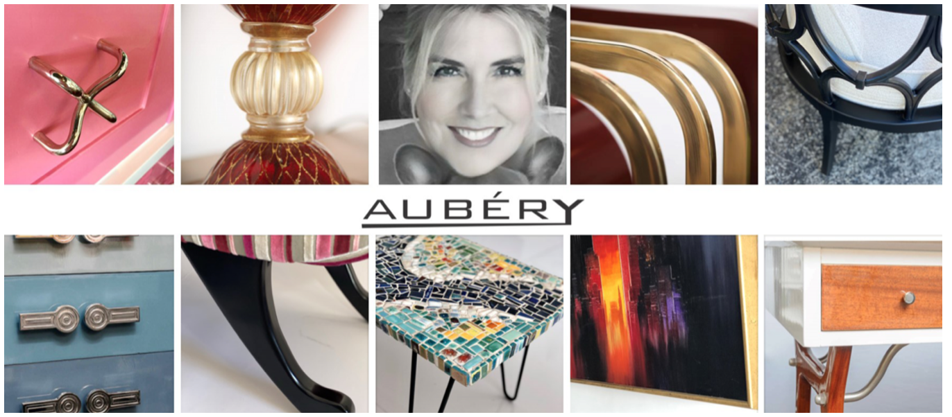 Karine Aubéry est depuis 2001, la fondatrice et dirigeante de la Galerie d’art et de mobilier AUBÉRY qui offre des pièces du milieu du siècle, modernes, vintage, des antiquités et des pièces glamour des années 40 aux années 80, dites « Mid-Century ».